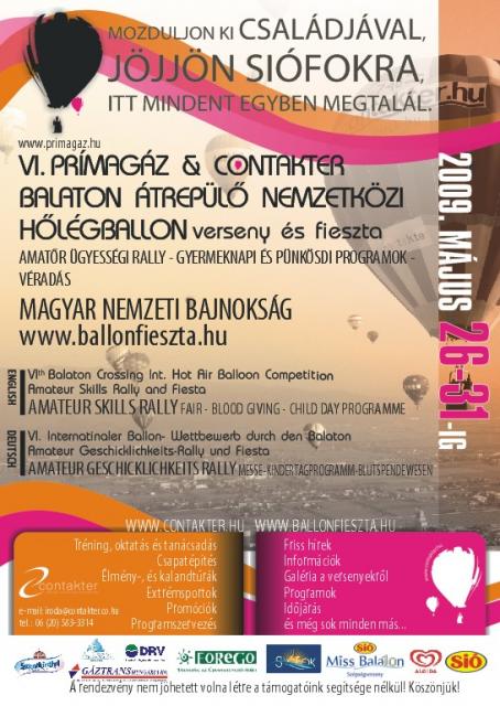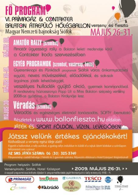 Holnap kezdődik Siófokon a VI. Prímagáz & Contakter Balaton-Átrepülő Nemzetközi Hőlégballon Verseny és Fieszta, és Hőlégballon Nemzeti Bajnokság. Holnaptól tehát fejeket az égnek szegezni, a tó felett színesen meredező lufik látványa bizonyára messzire ellátszódik majd a part mentén.